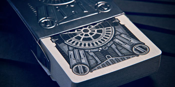 “Designed by Homer Liwag (Industrial Designer for David Copperfield), DeckONE showcases one of the most unique playing card boxes ever made. The gunmetal box glistens in the limelight and demands attention with its hardened steel aesthetic. The cards are printed in Q1 quality on the web casino press at USPCC.” More pictures after the jump!