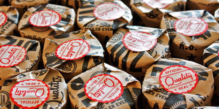 Items included Kansas City BBQ sauce and rub with labels and newsprint wrapping and hangtag, screen-printed apron with recipe cards, and custom printed old-fashioned cooler.
