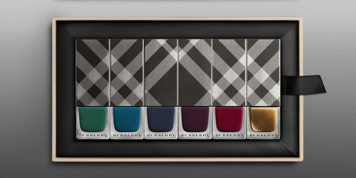 Burberry’s Autumn/Winter 2014 Nail Collection is finally here. The minimal telescope design style includes a two-piece box which is applied, embroidered and embossed with Burberry’s proud and valiant knight on his horse. Upon opening the box, 6 nail lacquers lay gracefully side-by-side displaying the signature Burberry pattern. The bottles are proportioned elegantly with stiletto-long top caps.