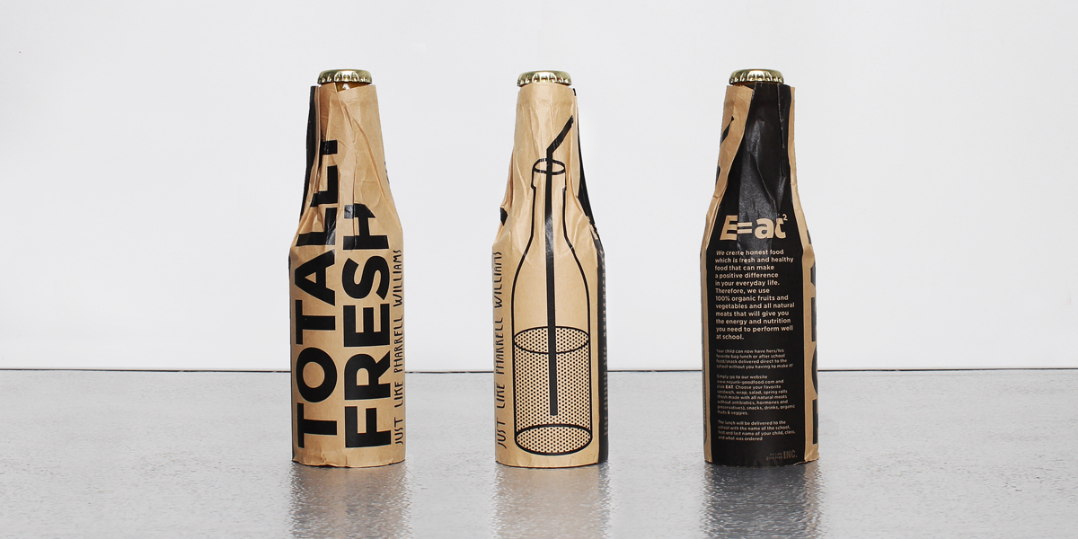 Unique food packaging that is not afraid to tell the truth. Designed by the—pony, E=at2 is about promoting healthy eating and doing so with cool illustrations and interesting facts. Sandwiches, and natural soda are wrapped in kraft paper that can easily be used as a placemat. Drawings of foods, inspired by pop art, are dissected allowing the consumer the ability to see what really goes into making their food.