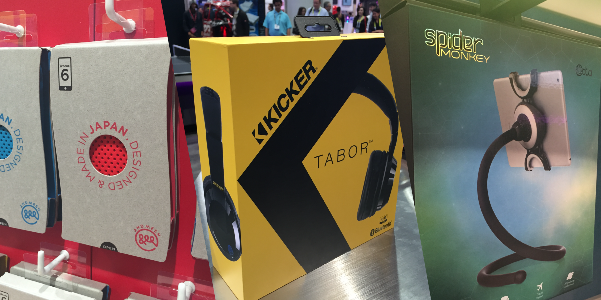 From the time you get off the plane in Las Vegas during the week of the the Consumer Electronics Show, it feels like the city has been taken over. Every signage opportunity is tech related, from the airport to the hotels. Even buildings themselves are wrapped with advertising messages for companies exhibiting at the show. Hotels are converted into exhibit space by moving out the furniture and then rolling in products and display fixtures. Multiple convention halls are utilized such as with the Sands or the Westgate, but the epicenter of it all is the Las Vegas Convention Center. This place consists of 3 gigantic tradeshow halls and a massive parking lot that is converted into usable space with the use of tents and stages. Trying to cover it all in one day is impossible, so today we concentrated on smartphone cases and headphones, and we found 3 stand out packaging designs.