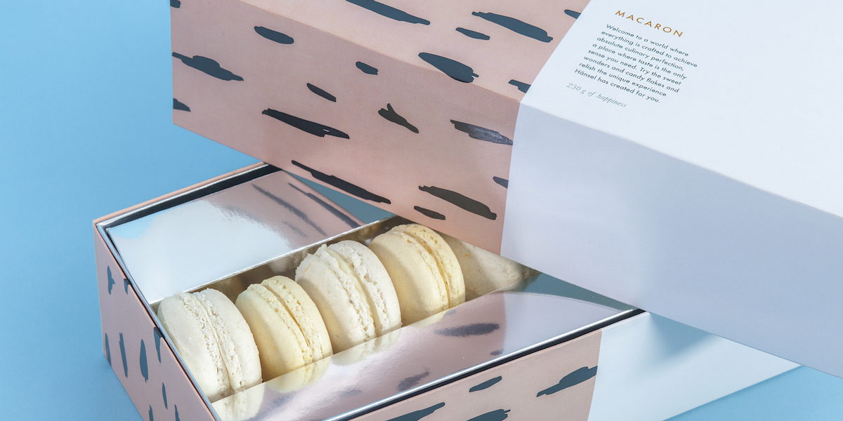The light colors and unique illustrations give the feel of an artisan sweets shop while still remaining fun and accessible to people of all ages. The macaron boxes and cones for items like popcorn have a traditional feel, but the packaging is infused with metallic details and small, trendy patterns that modernize it. The text used is small and minimal, just waiting for the curiosity of the consumer to give in and look to see what’s inside.
