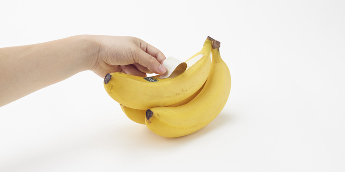 “When we were asked to design the packaging, we didn’t want to just come up with something extravagant because of its high quality: that would be totally inappropriate for an environmentally friendly banana. And so we decided to steer clear of boxes or packing material, and apply stickers on the surface of the banana peel. The sticker is double layered, with the first layer faithfully reproducing the textural feel and colours of the banana peel, even down to the lifelike bruises and discolouration. A segment of the sticker is partially peeled. When this is peeled off, the second sticker that indicates a message with an image of the flesh of the banana in the background emerges. Rather than just imposing some information about the banana, we created an atmosphere where you are compelled to read the story behind it.”