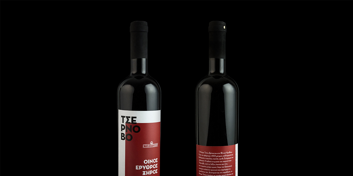 Wine lovers gather around and give Tsernovo a taste. Produced by a winery up in the northern Grecian mountains, this wine is rich in flavor and aged in wooden barrels. Designed by slab, a simple yet bold label helps attract a younger audience.