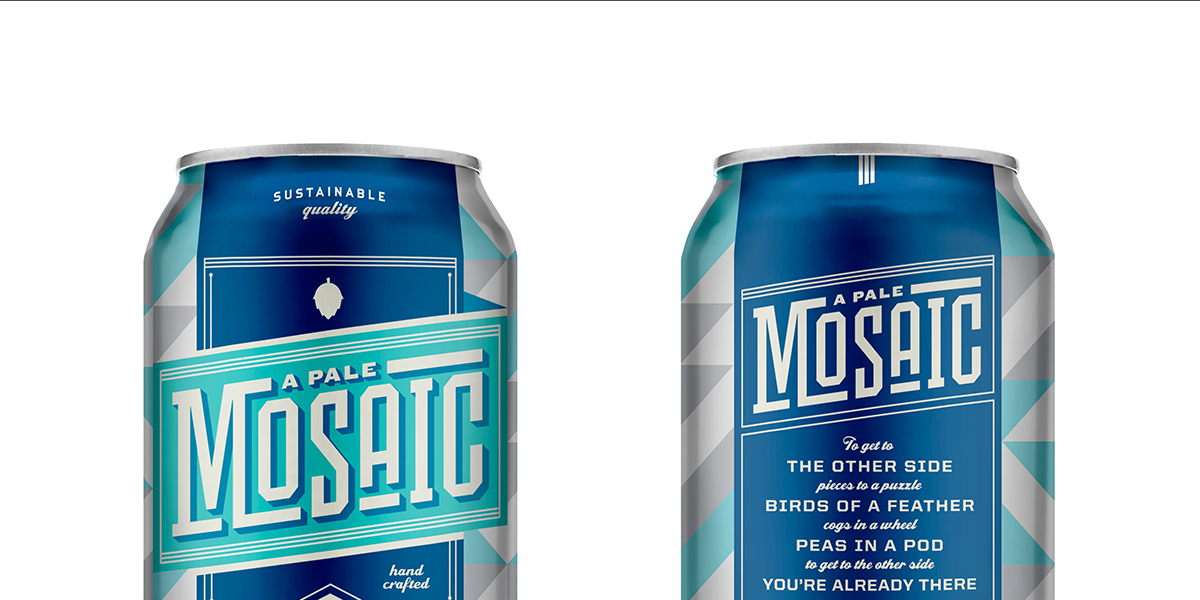 For A Pale Mosaic we took our visual cues from the beer’s descriptors, “rich, crisp and vibrant”, and developed a subtle “mosaic” that enhances the vitality of the design.