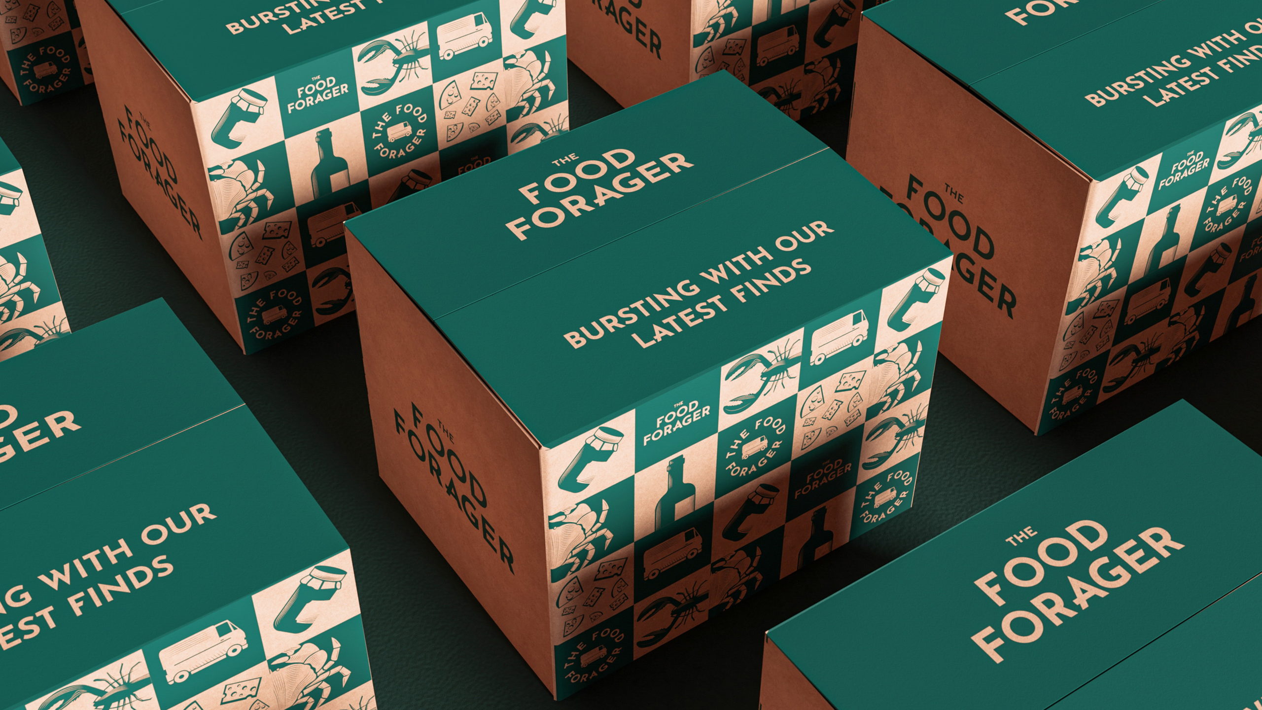 The patterns on the sides of the box are checkered, and depict illustrations of the various items the forager box might contain. This brings a mysterious and exciting element to the design, giving The Food Forager an edge in the expanding subscription box market.