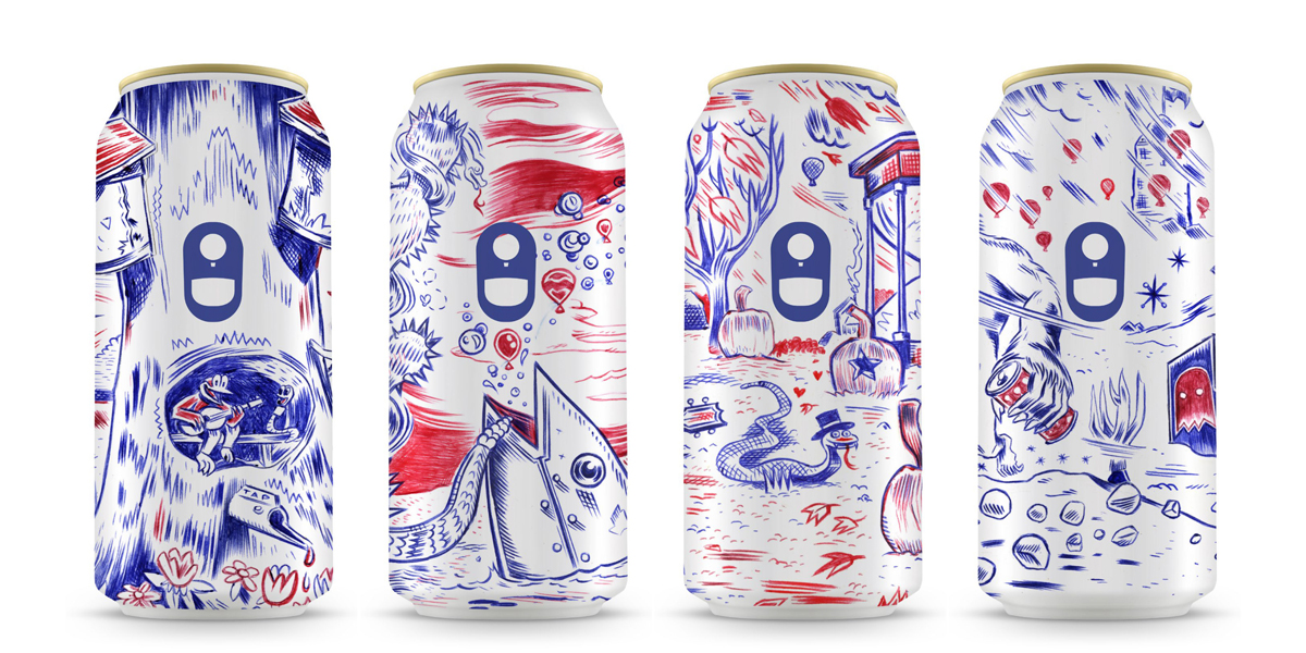 Aeronaut Brewing Co. chose the local design firm Loyal Supply Co. as their partners to collaborate and design the upcoming canned beer’s packaging. The inspiration for the design work was the actual customers of the brewery and the coaster doodles people leave behind. And, with this inspiration, Loyal Supply Co. came up with the concept of coaster doodling a year’s worth of “Aeronaut Brewing” stories onto a 4 pack of the brews.
