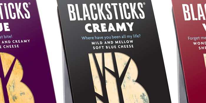 “Butlers came to us about a year ago when Blacksticks Blue, their absolutely stonking cheese, was languishing on shelves. This special cheese is lovingly handmade (like every cheese the Butler family produces) with a loyal following, but its safe, old packaging was in need of some TLC.