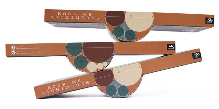 “In March 2012, the Marbles Game Design Contest was won by Matt Buchanan with his idea aptly named Rock Me Archimedes. By combining strategy, skill, and a little bit of luck, the game consists of a wooden board that rocks like a teeter-totter, a special die, and 28 marbles. To win, you need to be the first player to oh-so-carefully get four marbles to your end of the board without causing it to touch the table.”