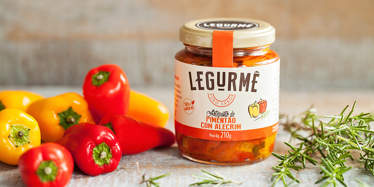 “The name Legurmê is a mix of words, ‘Legumes’ Portuguese word for Vegetables and ‘Gourmet,’ a cultural ideal associated with the culinary arts, word with the letter ‘t’ mute and ‘Puro Sabor’ that means pure taste or pure flavour. The modern craft brand targets young consumers with busy routines that seek high quality and convenient products. The colors differentiate the flavours of each antipasti, forming a collection of harmonious labels.”