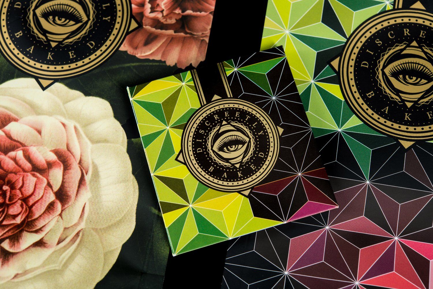 For the branding of luxury cannabis brand Discreetly Baked, we were tasked with creating a look that would feature bold, distinctive branding for a diverse line of cannabis products. We wove the brand name throughout the design; all elements come back to the core concepts of being “discreetly baked.” We started with the concept of classical, elegant elements to evoke the idea of an upscale party in a bag, with complementary patterns intended to connect the organic and chemical components of cannabis into one, seamless brand.