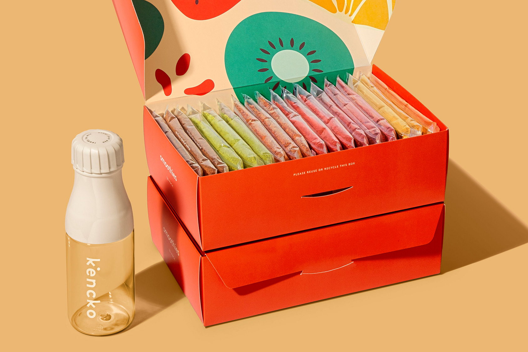 Kencko makes smoothies as easy as shaking together a drink with a variety of powdered smoothie packs made from fresh fruit and vegetables sent directly to customers. Kencko’s range includes 12 varieties based on function, such as immunity boost, energy, and brain boost. All the recipes come from organic produce that is flash-frozen, slow-dried, and then blended.