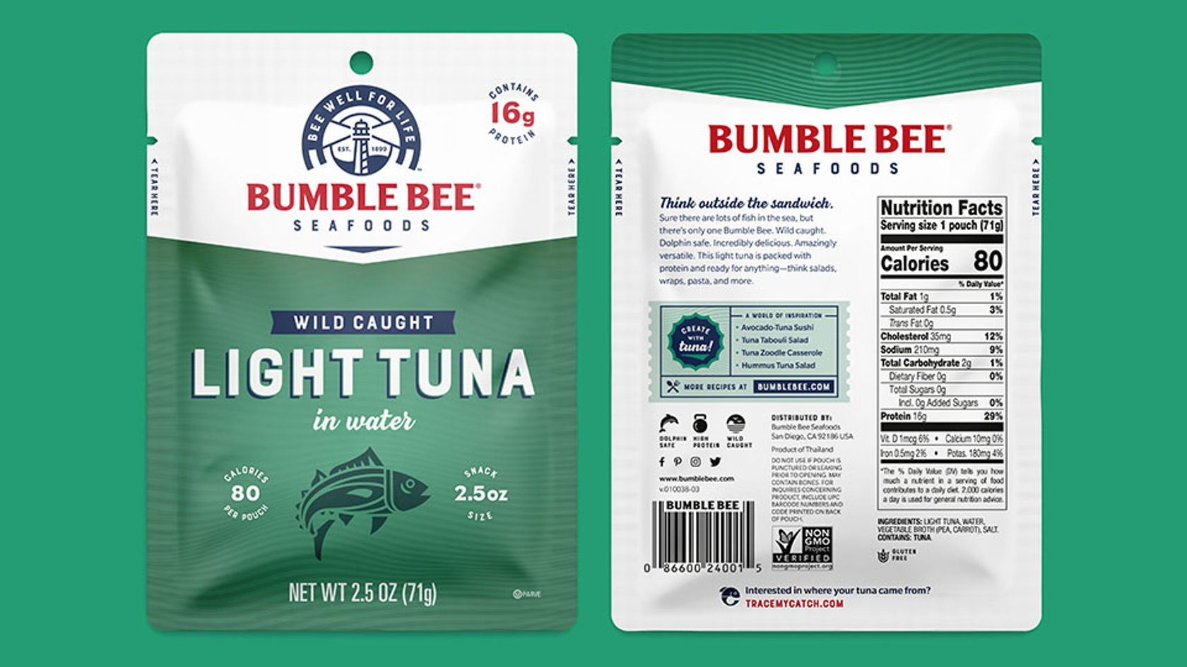 Bumble Bee Seafoods has been around since 1899, and over its lifespan, has made a few minor changes along the way. With a recent surge of other shelf-stable seafood brands, the iconic tuna brand needed to make slightly more drastic changes to engage new customers. In an effort to appeal to consumers who are interested in sustainable seafoods with more adventurous flavors in convenient formats, they’ve upgraded their packaging.