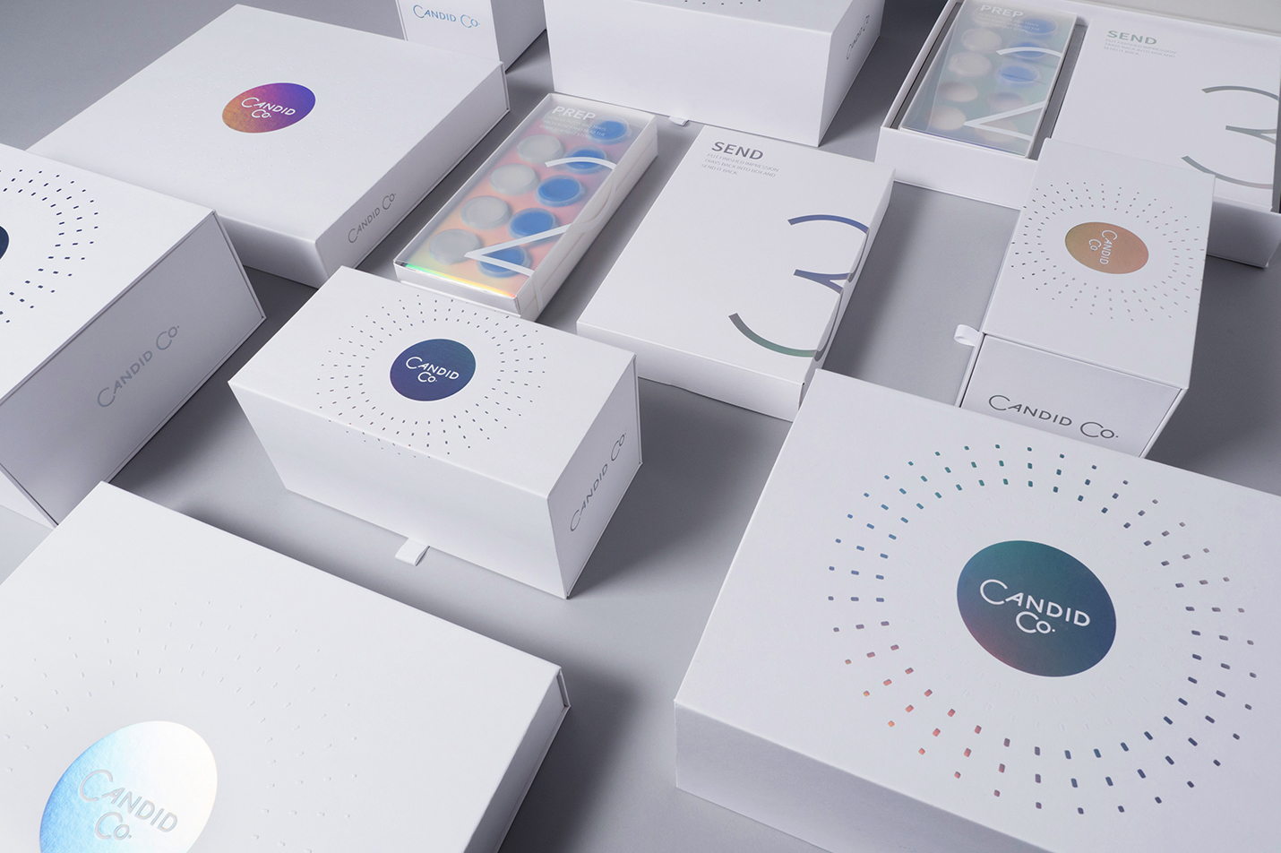 Uneka Concept & Bobby Ghoshal designed this simple yet shiny packaging for Candid, a brand that wants to help you make your straight teeth dreams come true. We love the rainbow foil details that elevate the look of the brand.