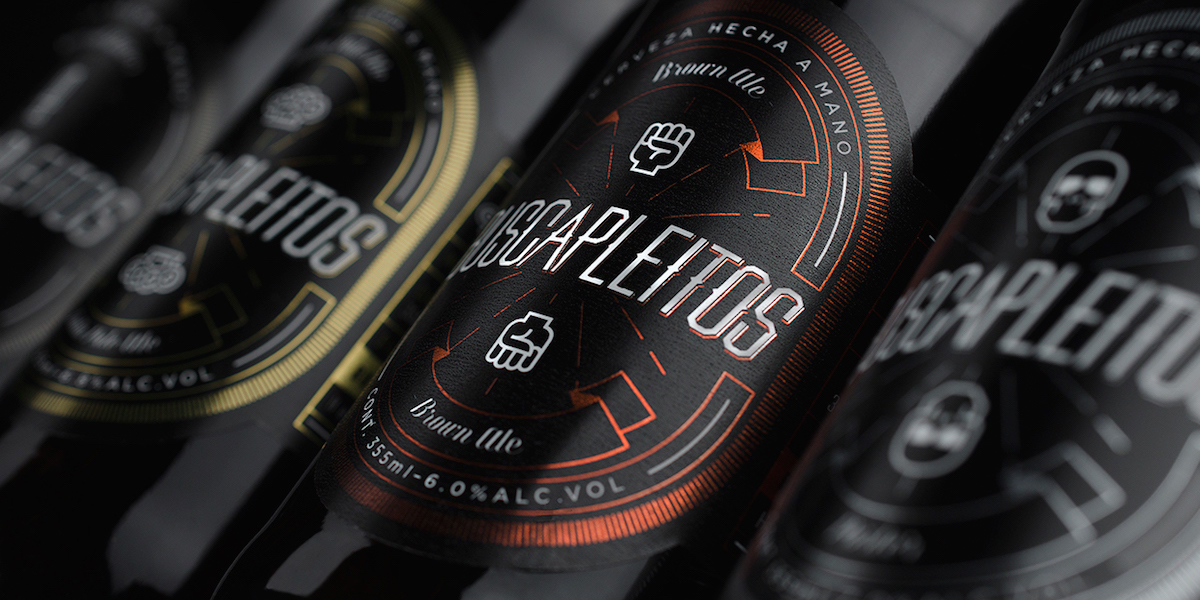 “Based on the personality and strong flavors of Buscapleitos’ four brews, different icons were created to represent each of them, along with a color palette and a graphic style that are elegant, but never shy.”