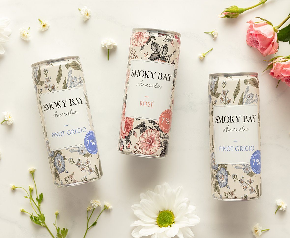 Eziwine creates a fresh floral design for Smoky Bay Léger range of bottled and canned wines.