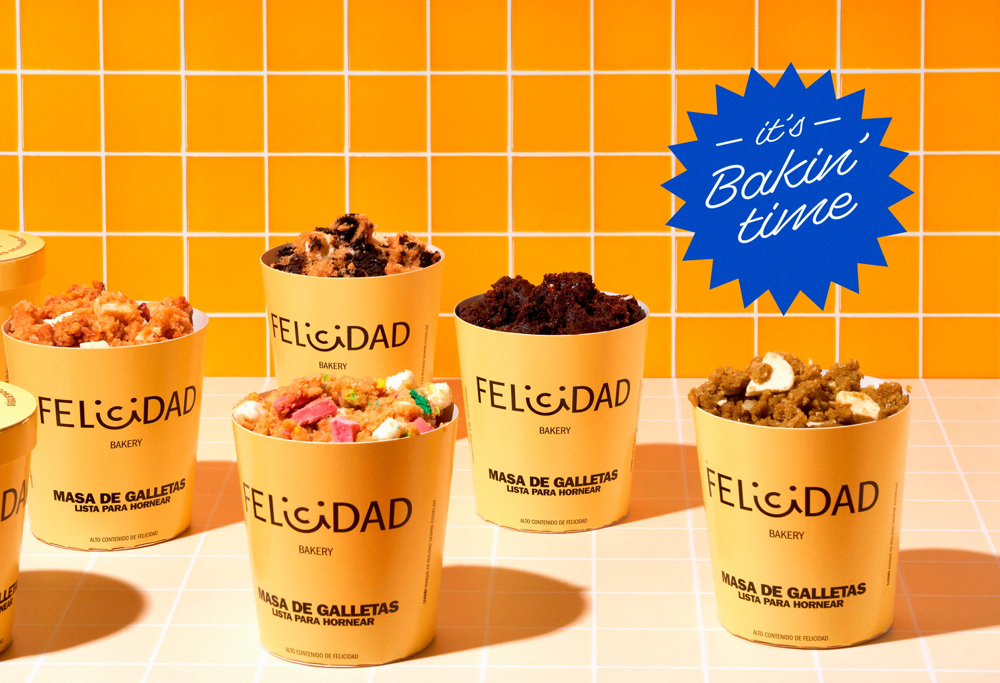 Every day is a celebration thanks to the branding for Felicidad, a bakery that specializes in ready-to-bake cookie dough. The bold yellow utilized throughout the design is warm and approachable while still being visually arresting.