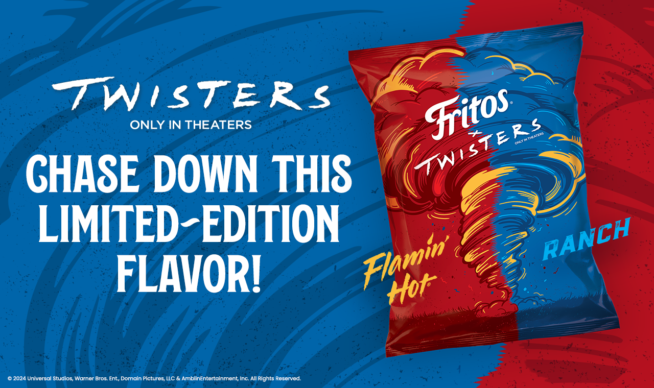 Case in point? Fritos has produced a limited run of Flavor Twists bags as part of the tornado movie’s promotion. Each pack contains a mix of Flamin’ Hot and Ranch Fritos Twists, two popular fan favorites.