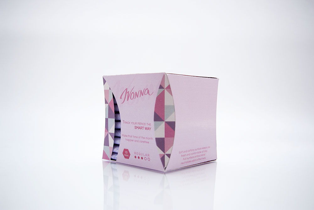 “Ivonna is a smart period pad. Each pad has a QR Code that is linked to an app that tells the woman when the pad should be changed. A modern approach was taken to the packaging, creating a pattern on the corners and on the inside of the product. A window was made so the quantities left in the box can be easily seen.”