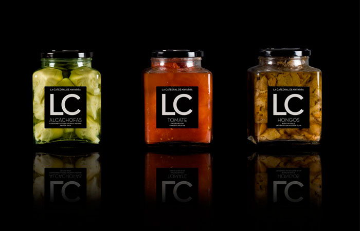 La Catedral de Navarra is a contemporary take on food package design. An eye catching modern logo is something I rarely see in the food industry and on top of that the main color being black, which you also rarely see in food packaging. I really love the uniqueness this design has and the vibrant colors that are represented through the vegetables in each jar which accents the label and overall design very well. It would definitely catch my eye on the shelf! See more images after the jump!