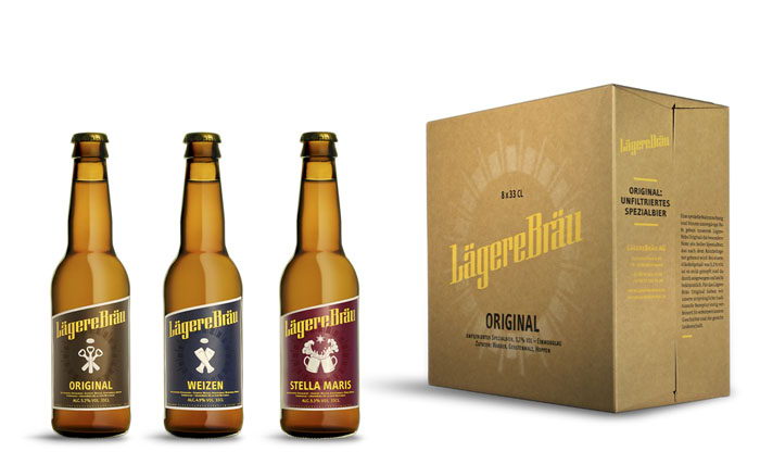 “The small and regionally operating brewery LägereBräu in Wettingen, Switzerland has been producing beer specialities since 2008. The products are beers for the pleasant moments shared with friends. The visual identity expresses the customer base’s common passion for those moments and emphasizes the product being a natural part of them.”