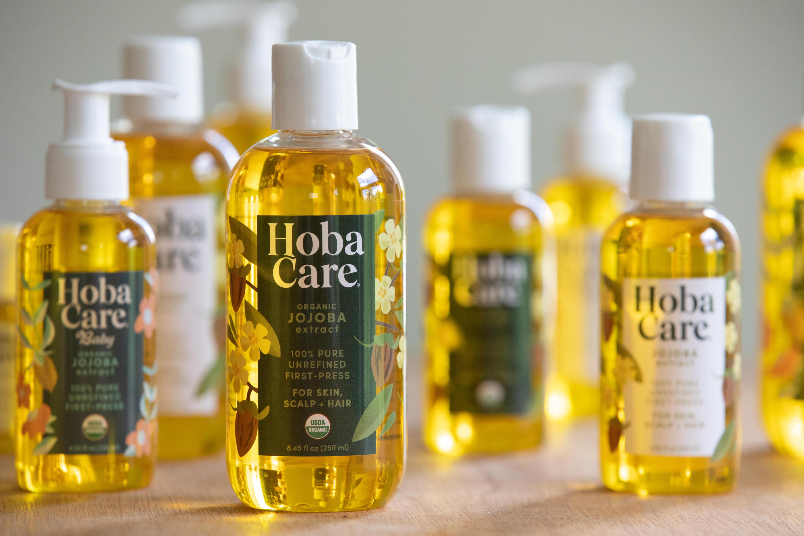 The clear bottle design of HobaCare allows the natural amber yellow of the jojoba oil to be the hero of the design. Coupled with a serif font that exudes authority, it speaks to the natural ingredients of every product in the line.