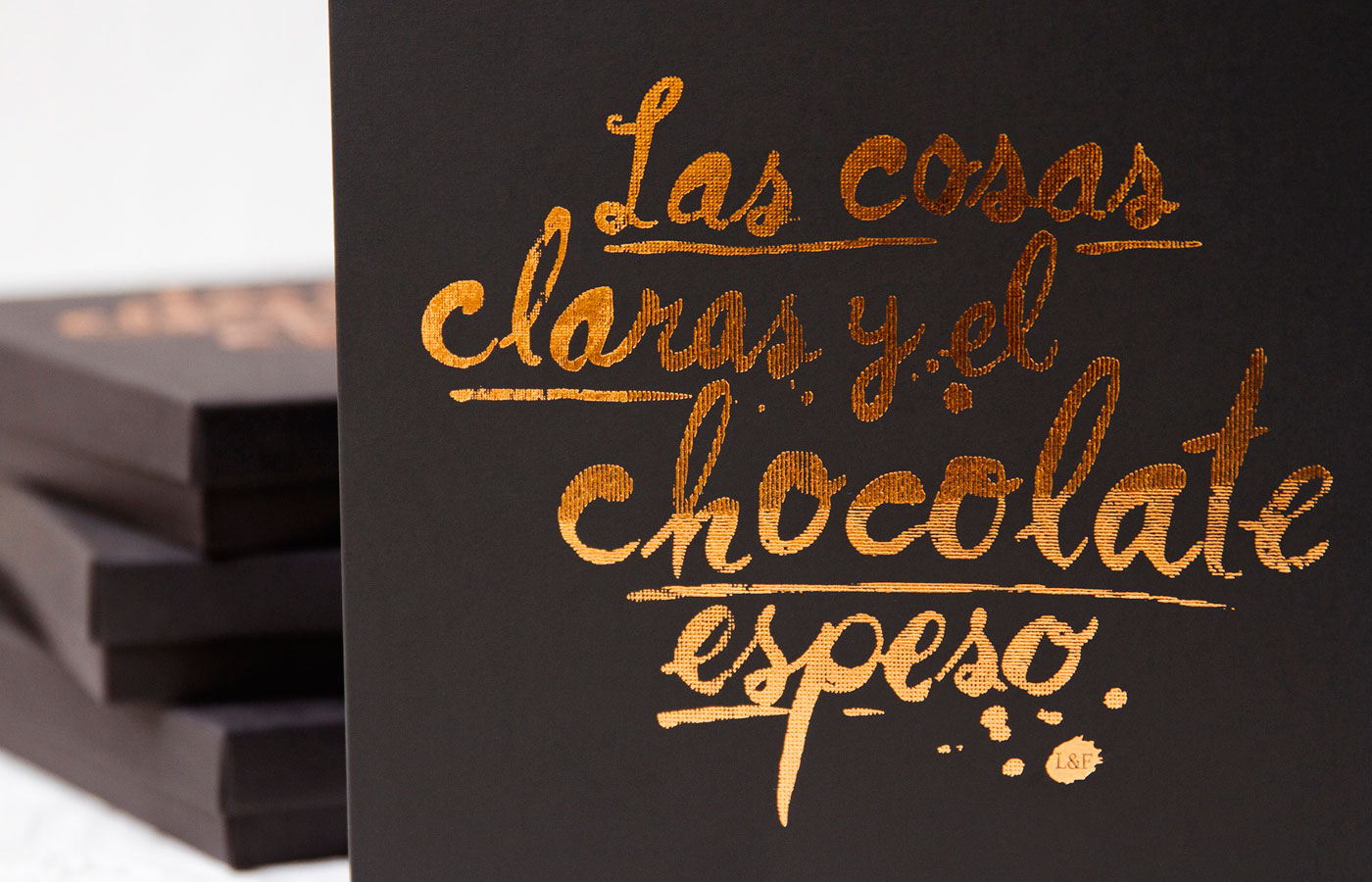 Lost & Found, a specialist in food and beverage brand created a beautiful, chocolate colored box with luscious gold lettering to hold a special gift for thier clients. The gift, a hand crafted range of bespoke pencil chocolates by artisan chocolatier Sue Lewis.