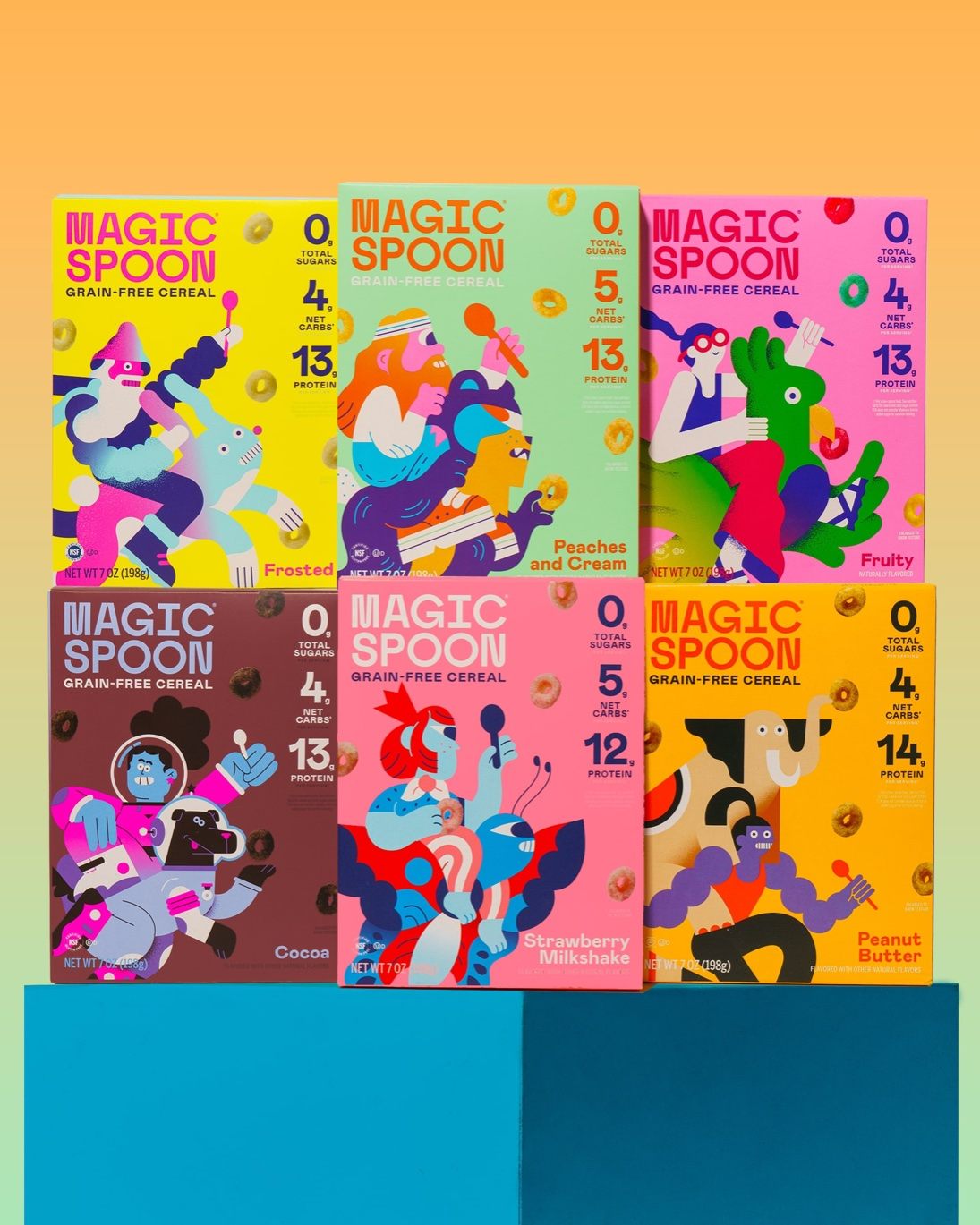 The sugar-free, high-protein keto cereal brand that stormed markets, also known as Magic Spoon, has just released two new limited-edition flavors inspired by spring desserts. Inspired by the warm and cheerful time of the year, Gander designed the brand’s packaging with bright colors at the forefront of the design. In addition, the Strawberries and Cream and Peaches and Cream flavors feature the brand’s beloved quirky characters erupting from the bottom left corner, and the typography hierarchy is consistent with the rest of the brand’s flavor lineup.