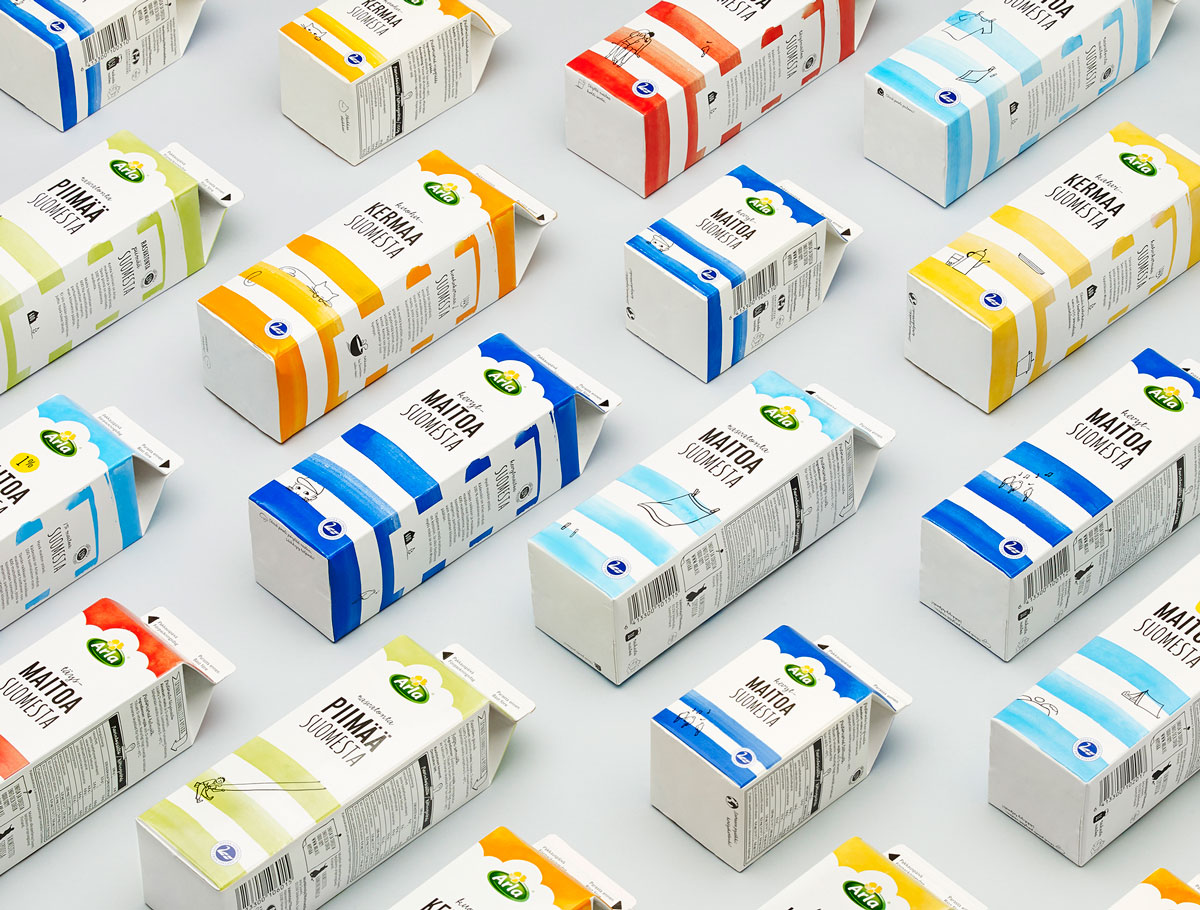 The project was initiated after Arla began selling exclusively local milk in Finland. The agency took the task of designing the packaging to reflect the brand’s new approach and the milk’s origins.