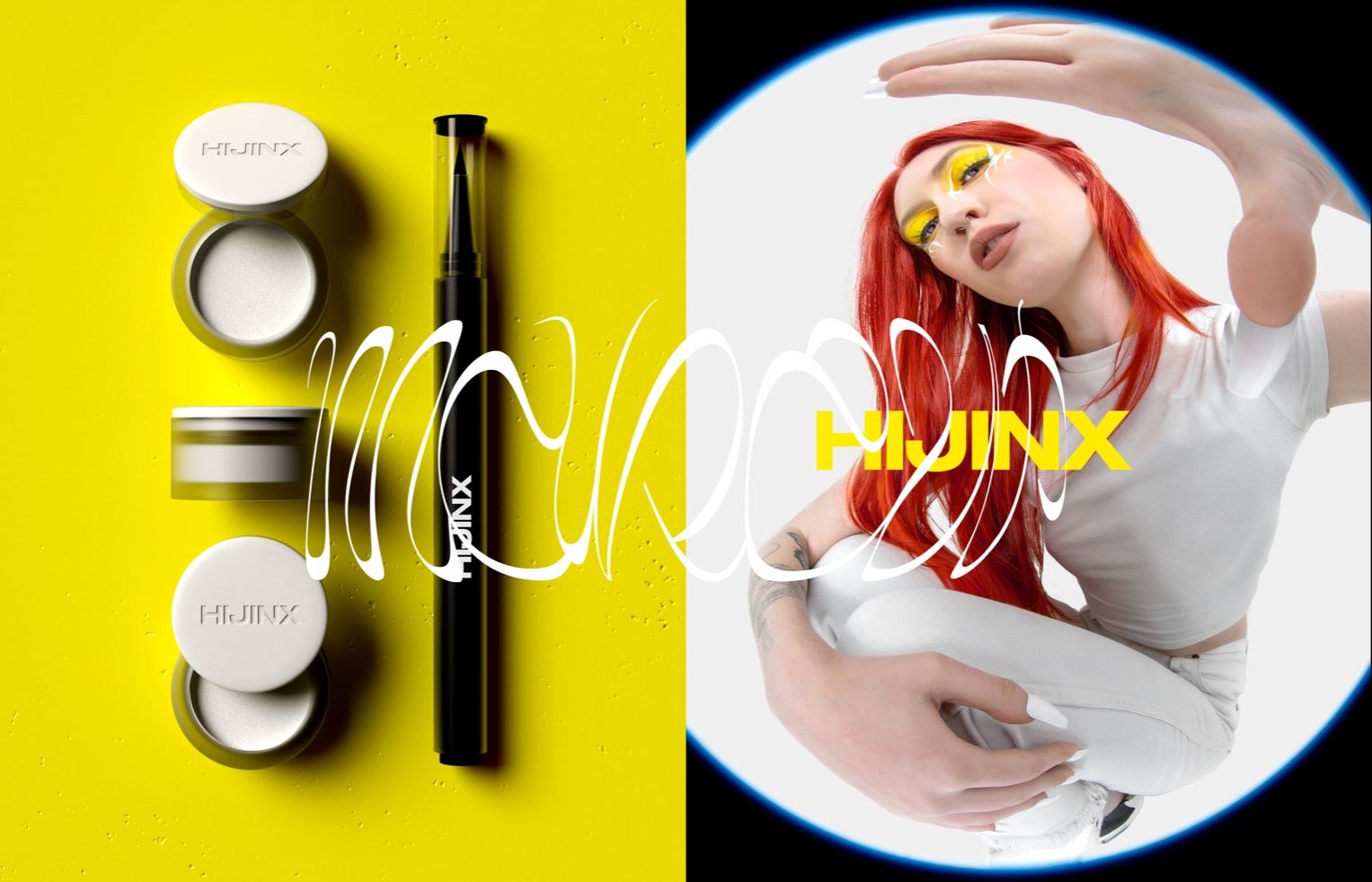 HIJINX is an eyeliner brand developed by Yungbld founder Laura Miller. The brand was founded and inspired by artists and creatives who use makeup as a form of expressiveness. Because imaginative rule-breakers inspired the brand, the branding and packaging systems are reflected by this carefree attitude.