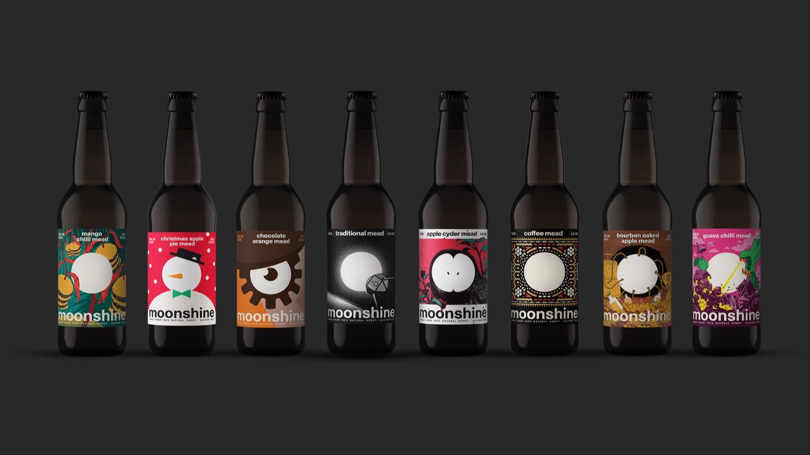 Moonshine – India’s first meadery, brought us in to rebrand and design a new packaging system for their range of meads. Their pre-existing brand identity and packaging (well received by patrons and critics alike) was facing a peculiar problem at a retail level. Shop keepers were referring to their meads as “M-M” rather than moonshine due to the pre-existing branding and packaging. Our primary objective with the rebranding and packaging was to fix this issue.