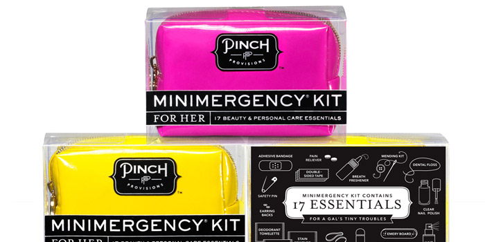 Ms. & Mrs., the leading purveyor of premium emergency essentials, discovered that its coveted line of personal care kits (Minimergency®, Shemergency®, and Hemergency®) had better recall than the company’s name. They partnered with Beardwood&Co., specialists in branding and innovation, to rename the company, Pinch Provisions, and to design a fresh, cohesive packaging system for its kits and the essentials within.