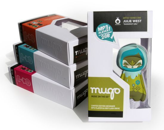 “Mugo was created by designer, Aaron Atchison of Feed the Beast, to merge all that is cool. A perfect mash up of music, art and collectible toys. This flash based MP3 player is a platform toy that acts as a 3-D canvas. It was important that the packaging emulate the product so it was designed to have creative versatility. A blind embossed box becomes the foundation for adhesive labels that can change depending on the artist or product series.”