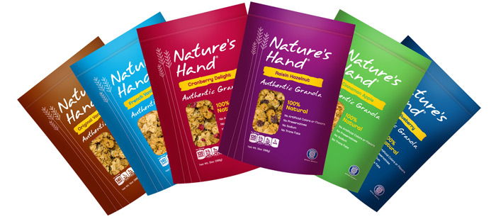 “The new premium packaging is bright and colorful and features a new resealable top that literally gives consumers a preview window to the 100% natural goodness inside. The bold colors used to identify each of the six unique granola blends – French Vanilla Almond, Cranberry Delight, Wild Blueberry, Raisin Hazelnut, Cinnamon Apple & Maple Pecan – means the brand will assume a place of prominence on the shelf for an affordable suggested retail price of $4.99.”