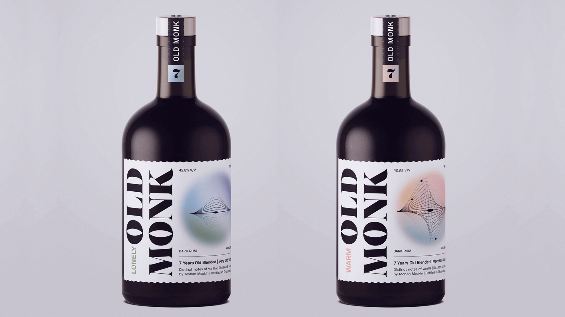 Old Monk is a favorite in India, but the modern elements with alchemist inspiration make for a spirit design that blends the past and the future.