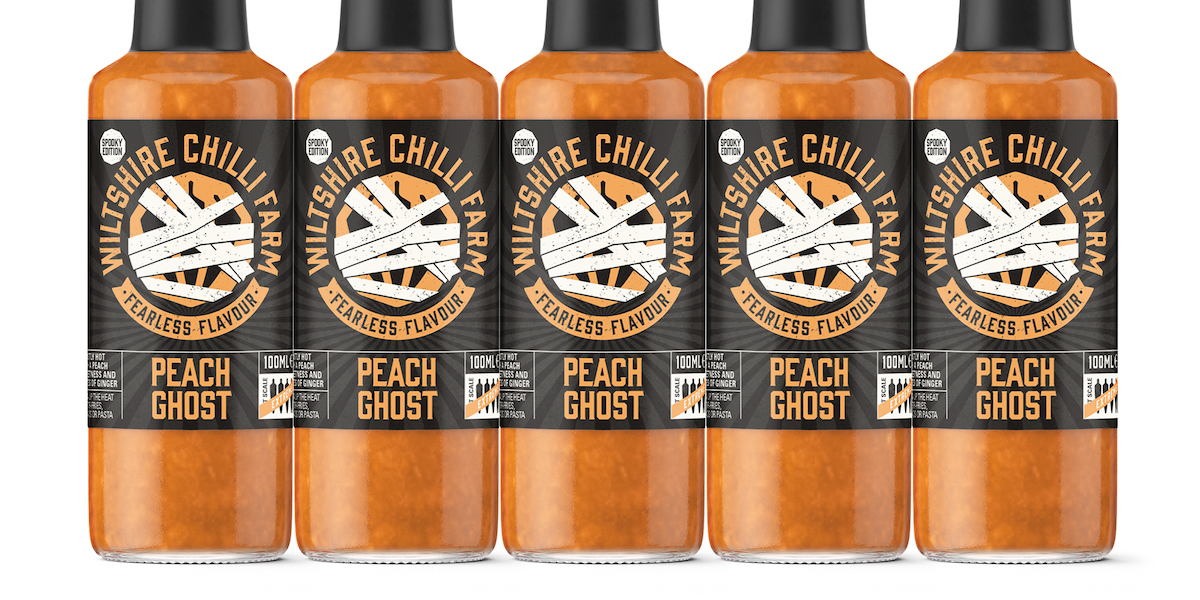 “Last year we created a limited edition Halloween special for our good friends at Awestruck Hard Cider and this year our Wiltshire Chilli Farm buddies wanted us to dress them up for the spooky season. Working with the WCF guys has significantly increased our knowledge of chilli varieties and the versatilities of their wonderful fruit. Using the formidable Peach Ghost chilli they have created a new ‘Super-Hot’ product not for the feint hearted.”