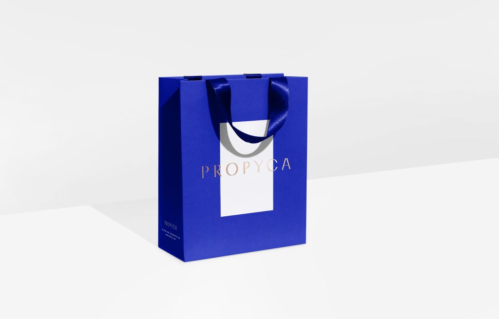 Laia Fusté Studio’s packaging design for Propyca draws inspiration from the deep blue frames used in the Catalan Pyrenees to protect homes and harvests from misfortune. This symbolic blue frame is central to the brand’s identity, with its bold use in varying proportions paired with minimalist typography and luxurious finishes, creating a design that illustrates the premium quality of the products.