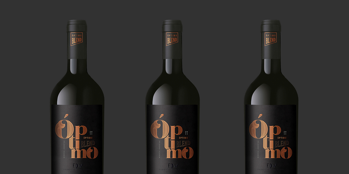 What eloquent wine packaging for Óptimo! Designed by Estudio Iuvaro, deep red wine is bottled and wrapped in hot-stamped typography. Texture is applied to the word, “Óptimo” to add dimension and quality appeal to the packaging. Finally, the winemaker’s logo, Fabricio Orlando, subtly sits at the base of the label.