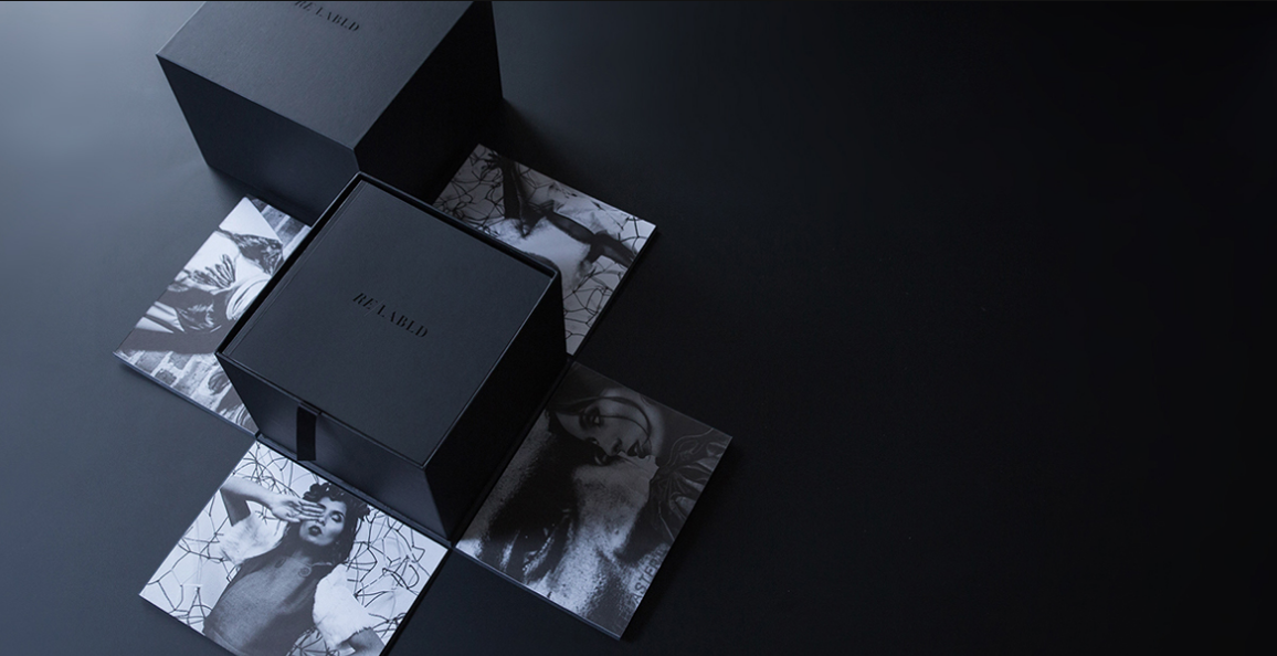 This press-kit is on another level. Designed by kidstudio, a simple black box has an unexpected surprise when opened. You are greeted with a grid of high-fashion black and white photos that are as equally striking as the other. Inside, an engraved USB sits bellow a stack of look books filled with the wonders of RE/LABLD.