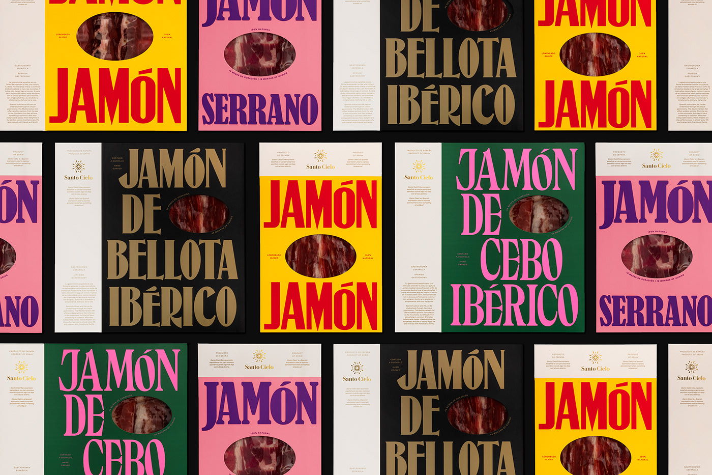 Visual Identity and packaging line for Santo Cielo, a Chinese delicatessen brand that imports traditional Spanish products into China. The project aims to celebrate Spain’s culture by capturing the vibrancy of its character.