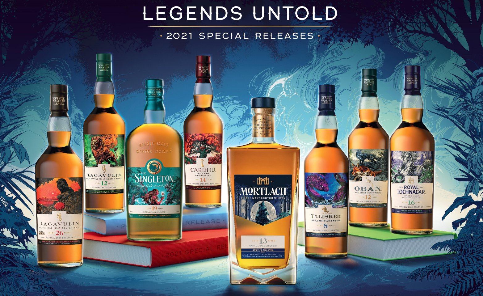 The nation of Scotland features a unique and special landscape, surrounded by the sea and sharing only one land border, but the mountainous area also includes over 31,000 standing bodies of water—or lochs. Unsurprisingly, this geography has inspired and served as a backdrop to rich mythology and folklore full of legends. Many are familiar with the Loch Ness Monster, of course, but Diageo’s latest whisky collection features eight other mythical creatures from Scottish lore.