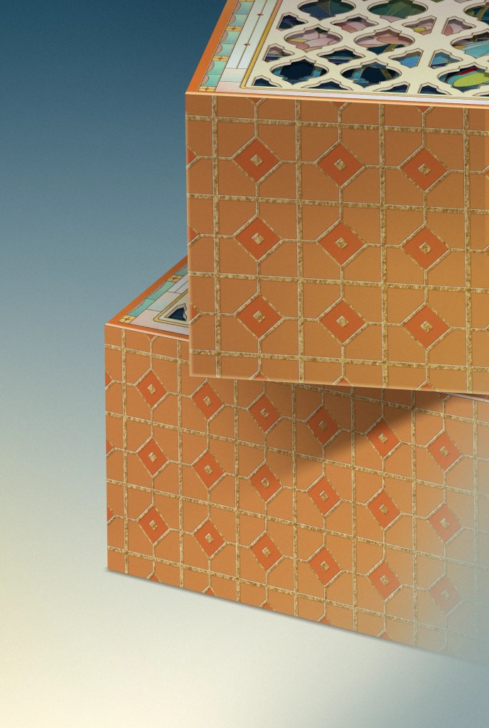 Hafood’s mooncake packaging by Meow Meow features dragonflies, lotus blooms, and arched latticework that echoes stained-glass panels. The linework is meticulous, the palette leans into iridescent gradients, and the structure opens with drama. While most mooncake boxes rely on gold foils and predictable motifs, this one builds a miniature world.