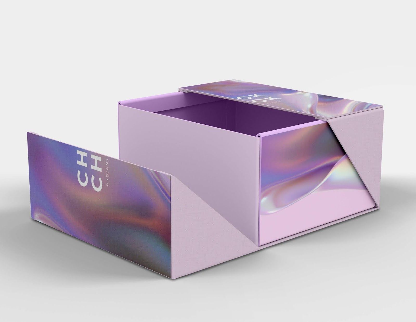 In Korean, “chok chok” is a phrase that describes luminous and moist skin. It’s another way of saying that your face looks as gorgeous as a glazed donut. Inspired by this phrase, Yayoua Yang, a University of MN Twin Cities student, created a beauty line aptly named Chok Chok. Choosing a holographic packaging design helps showcase the products’ luminance to the consumer in an artfully tasteful manner. Overall, the design aesthetic is sleek and straightforward while still appropriately showcasing the qualities and scents within each package.