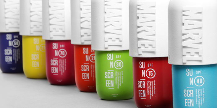 Packaging designed because ‘even super heroes need protection from the sun’s harmful rays.’