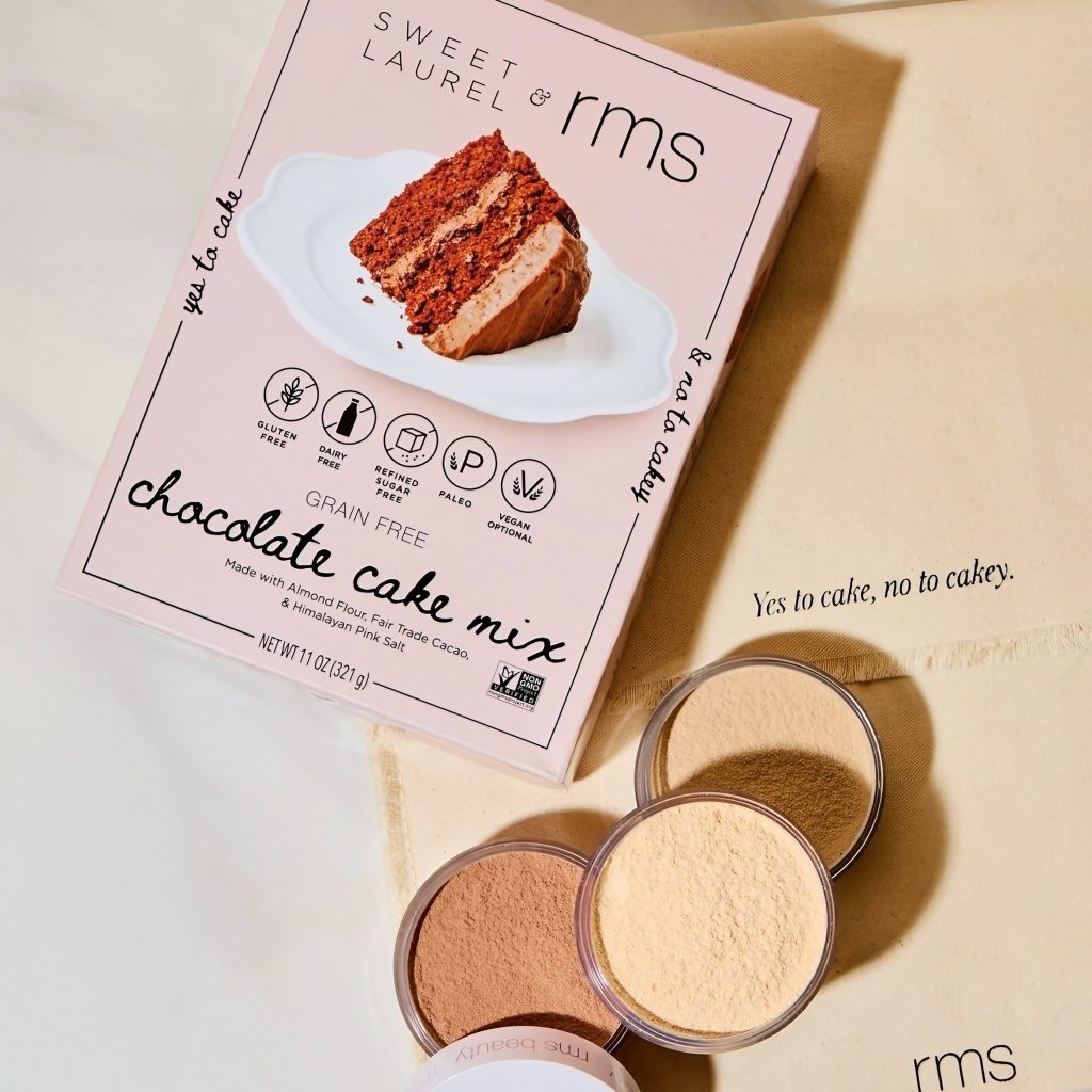 Sweet Laurel Bakery and RMS Beauty have teamed up to create a sweet brand collaboration and a special edition of their infamous chocolate cake mix. The packaging features soft, pastel colors and clean typography reflecting both bands aesthetics.