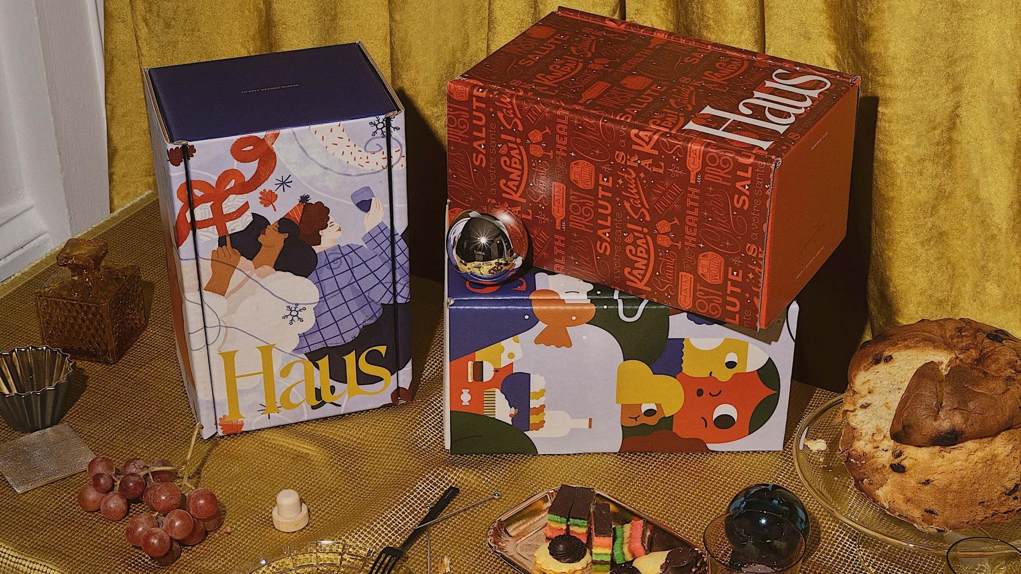 Holiday gatherings and celebrations inspire artists to create a trio of limited edition packaging for Haus, makers of aperitifs, an aromatic liqueur that is lower in alcohol than the gins and whiskeys they are based upon. The exquisitely design boxes are festive and premium enough to stand alone as an unwrapped gift.