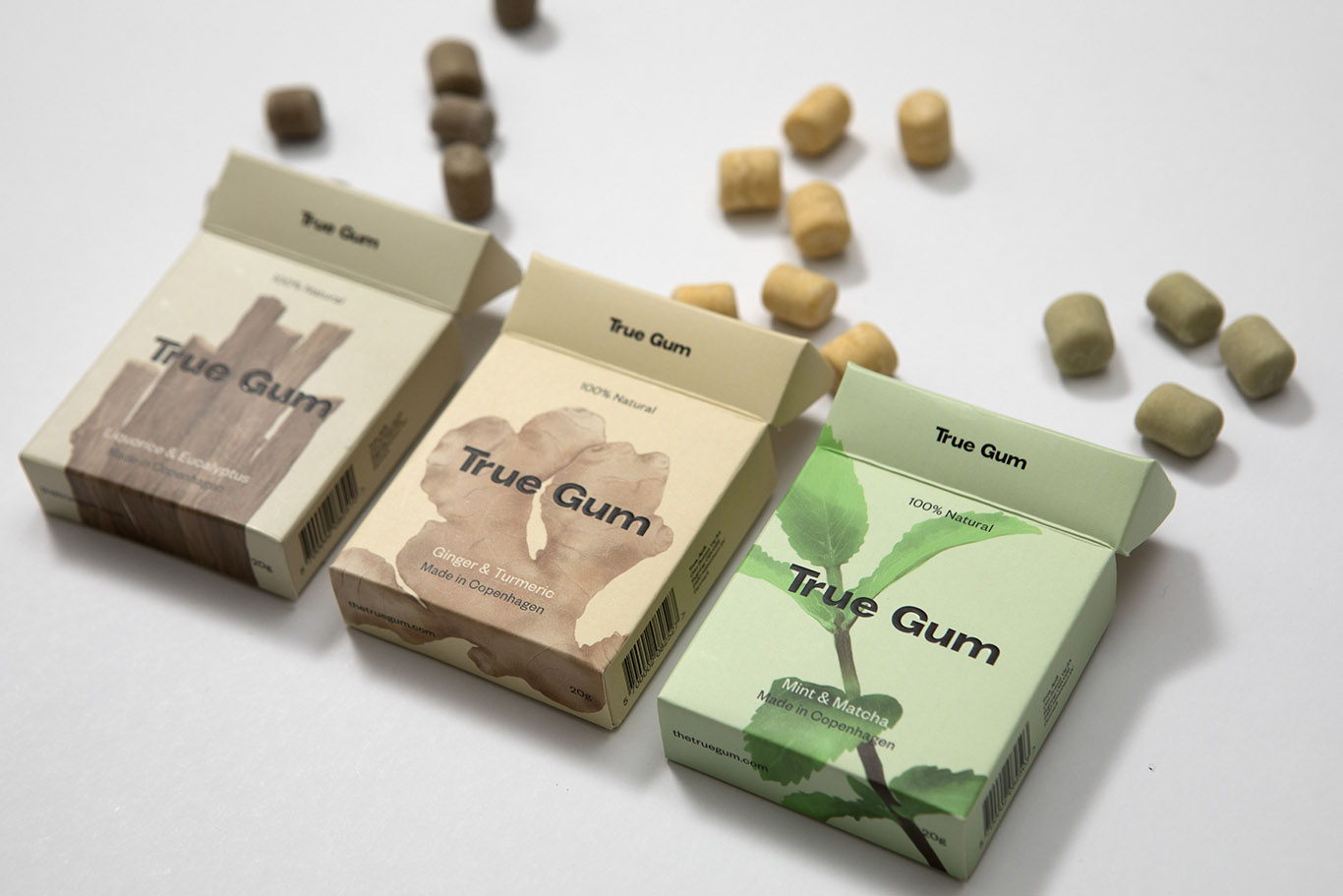 True Gum is a 100% natural and biodegradable chewing gum – free from aspartame, plastic and other nasty stuff. The design is made to reflect the natural ingredients and great taste. Adorned with an illustration of the main ingredient covering most of the packaging and the rest is made very simple – just like the list of ingredients.