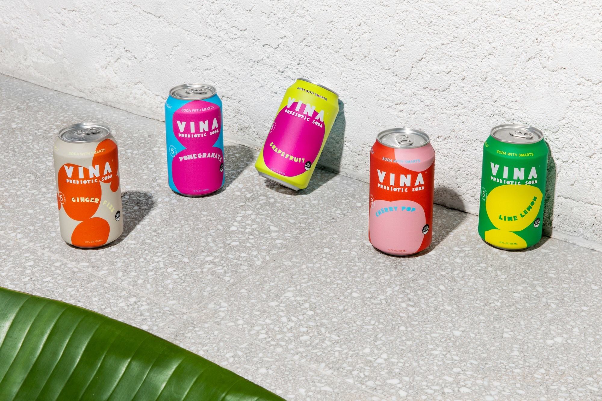 The prebiotics soda recently went a reformulation and took the opportunity to refresh the brand as well. The bright cans are undoubtedly eye-catching, with bright and bold color palettes and organic, round shapes dominating the labels. That shelf presence is intentional, as Vina’s distribution has grown to include Whole Foods and Erewhon supermarkets in SoCal.