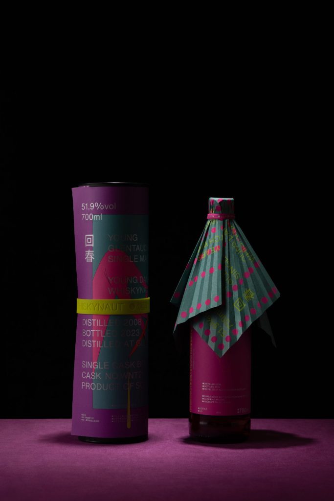 China’s 7654321 Design adds a modern edge to that classic look with their irresistible work for WHISKYNAUT’s special bottle for the indie rock band Young Dan. “Dan” translates to “elixir” in Chinese, and the Nagel-esque label art depicts a slender, pink hand with long fingernails releasing a stream of elixir in what feels like a fun nod to Death Becomes Her. The bottle’s wrapped in gorgeous paper covered in neon pink dots and sealed with a little plastic band, turning the whole unboxing process into a visual feast.
