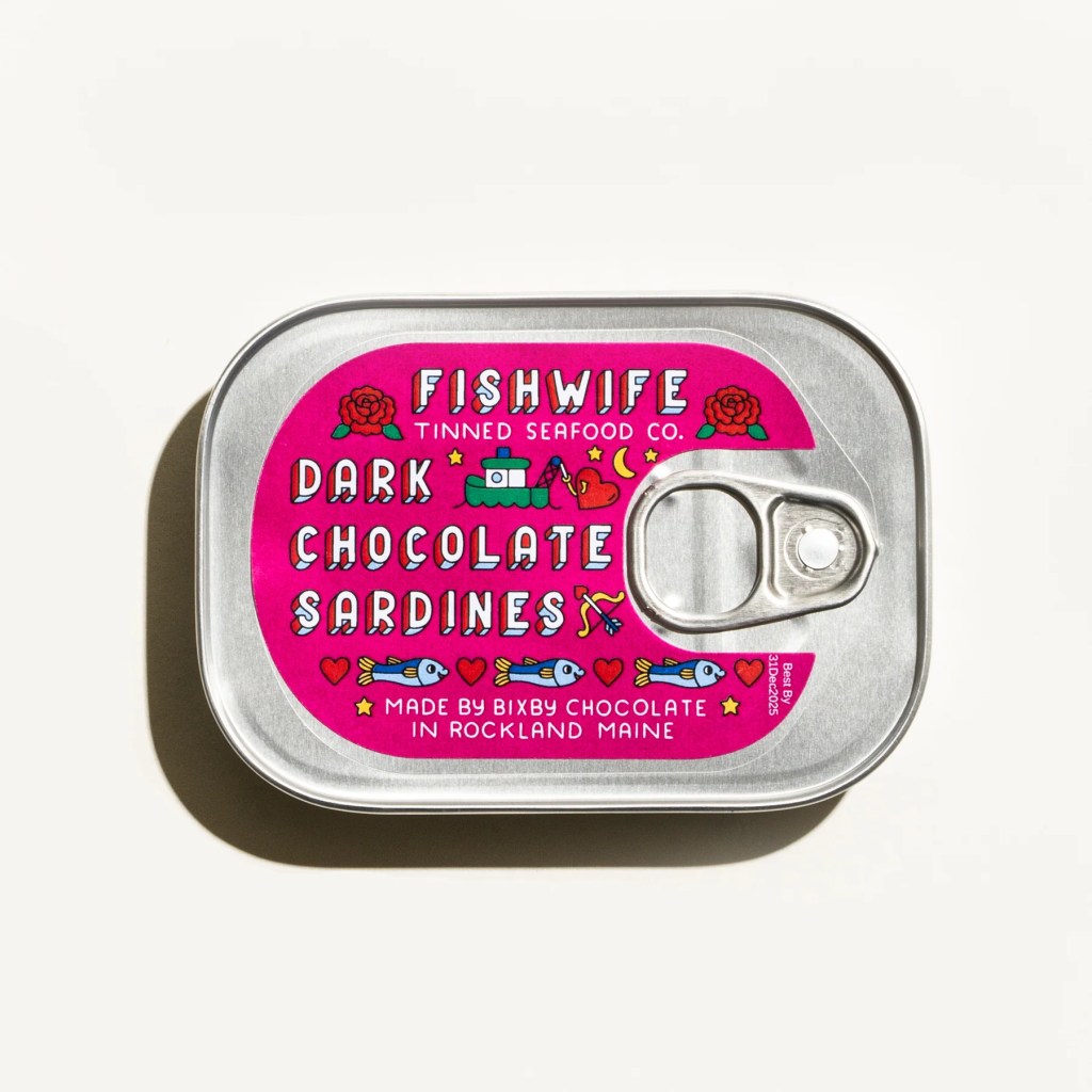 For Valentine’s Day, the brand released a gift box that includes sardine-shaped chocolate. As if that weren’t cute enough, the chocolates come in a tin identical to the brand’s actual fish packaging. The outer label of the tin features a bright pink label with the brand’s quickly recognizable illustrations and typography.
